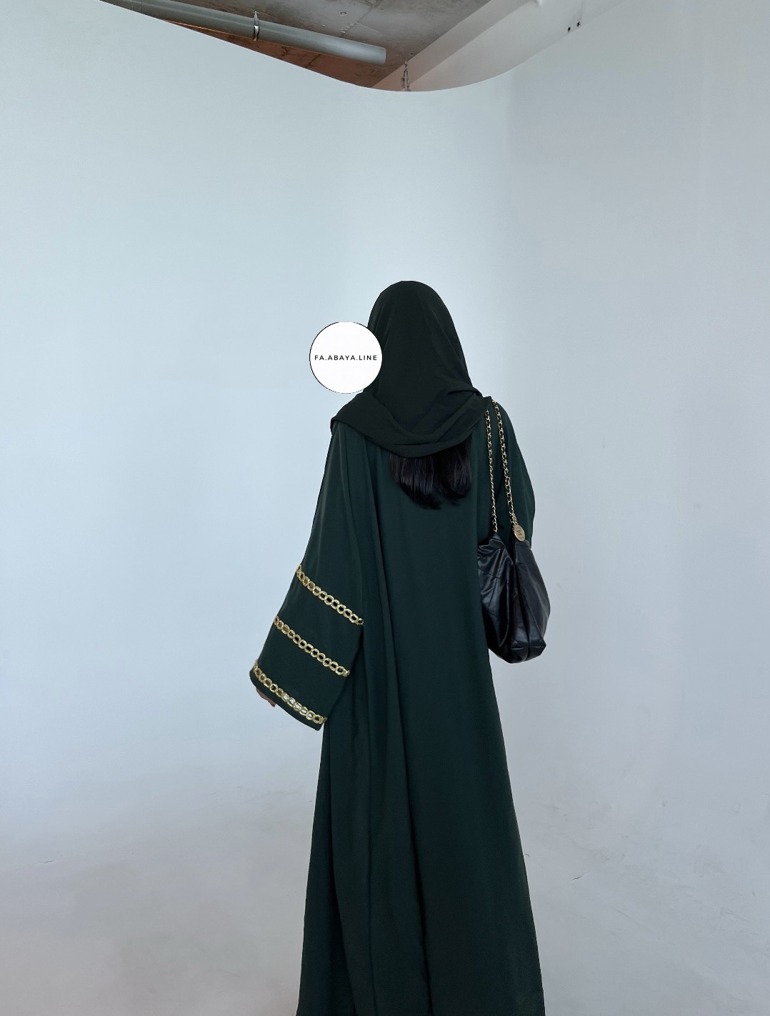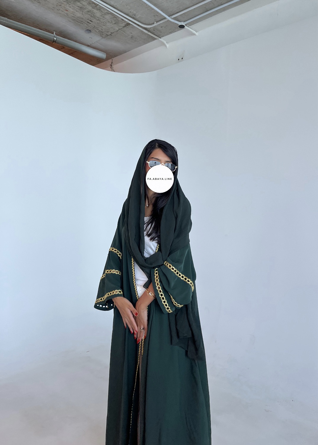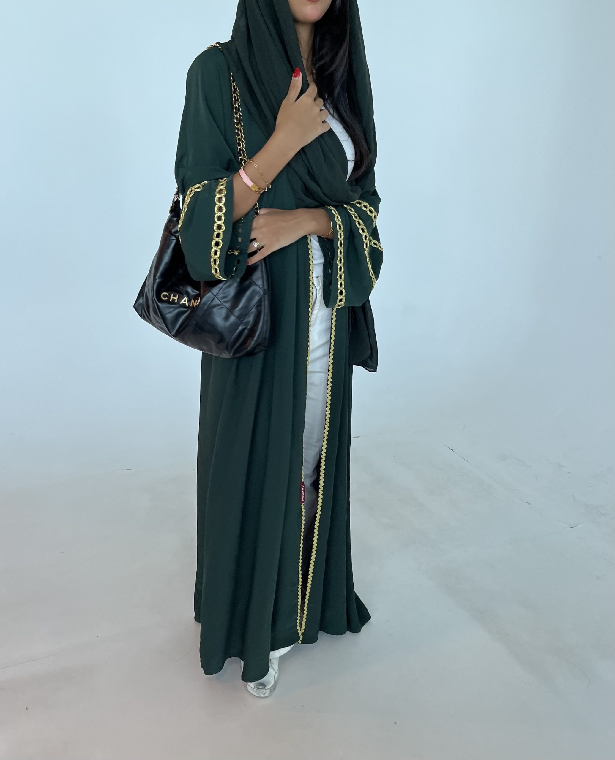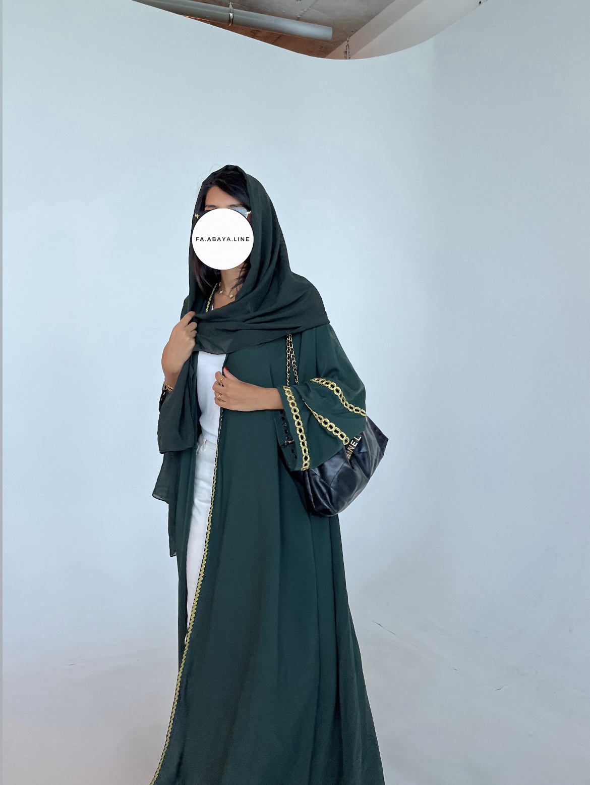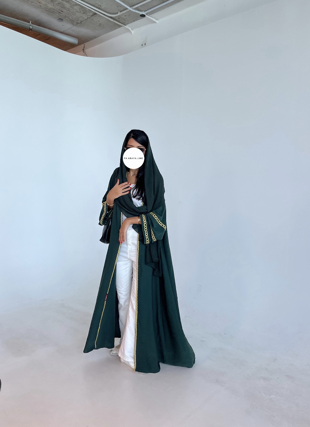 قماش العبايه لينن، القصه كلوش “تطريز باللون الأبيض مع هدب أسود