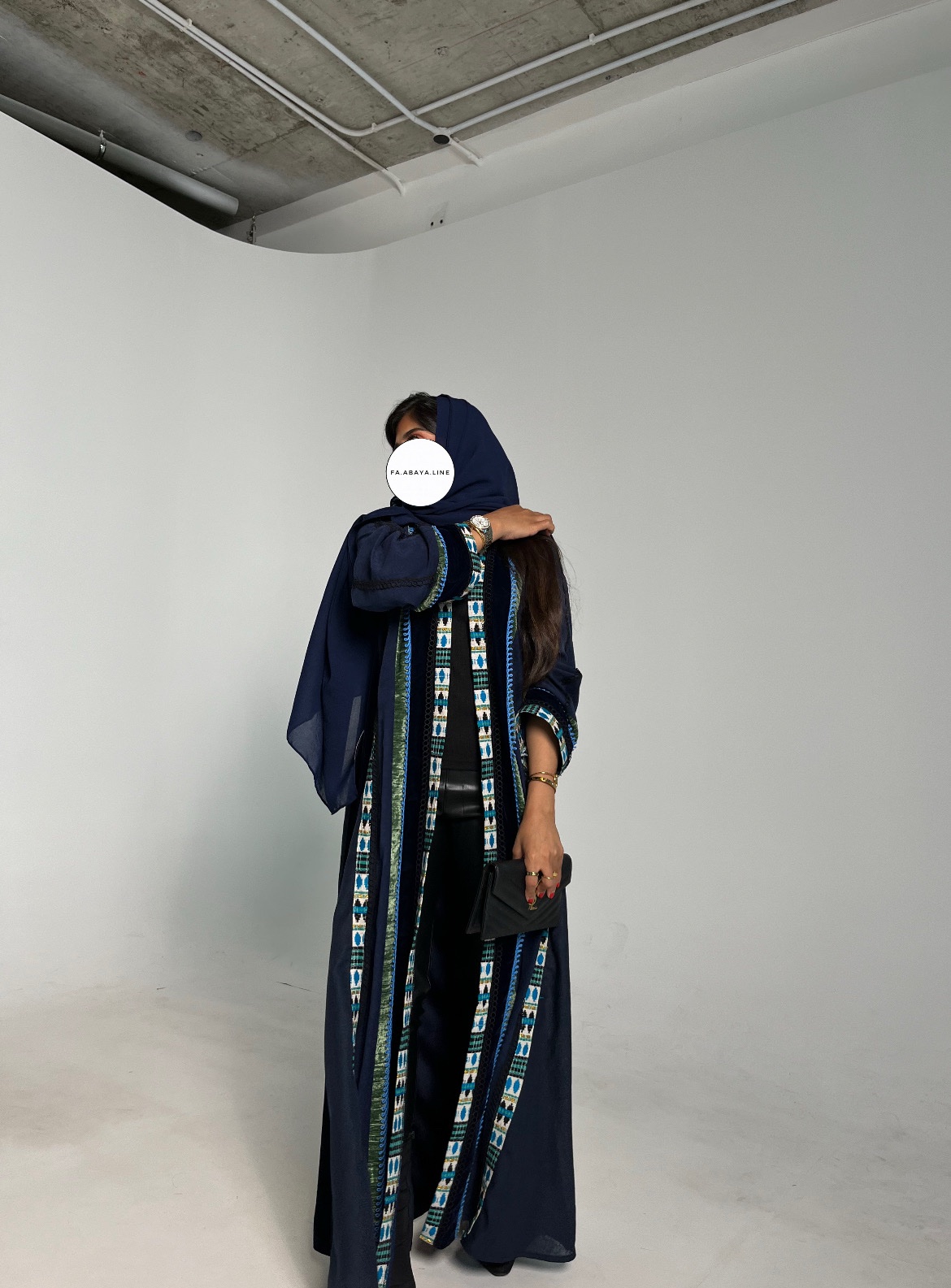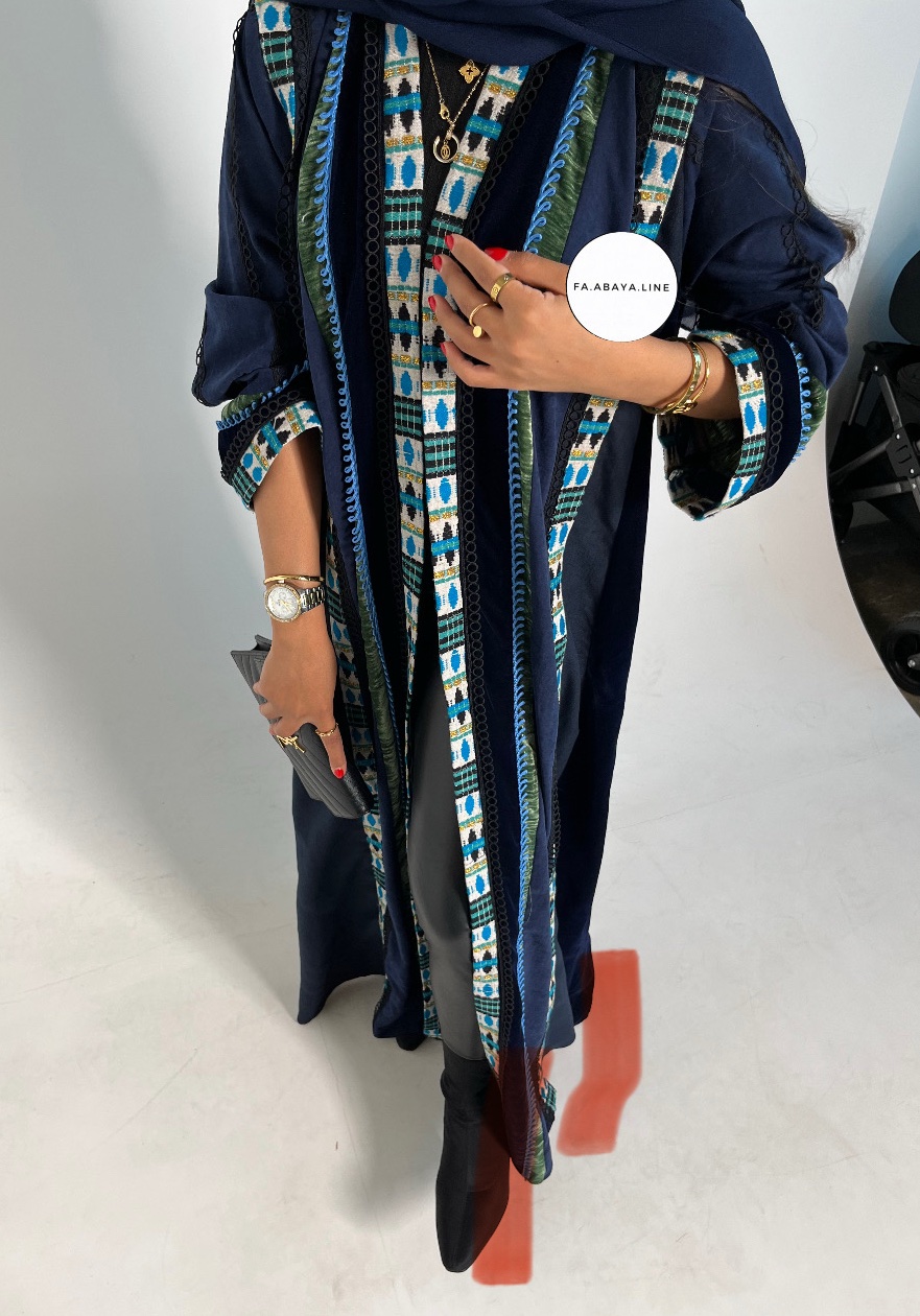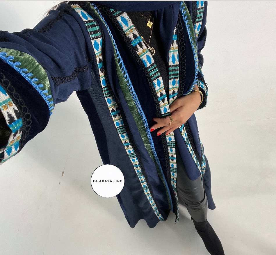 قماش العبايه لينن، القصه كلوش “تطريز باللون الأبيض مع هدب أسود