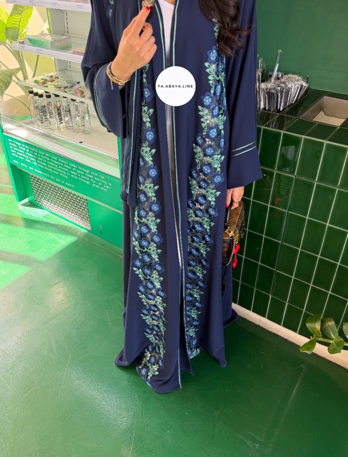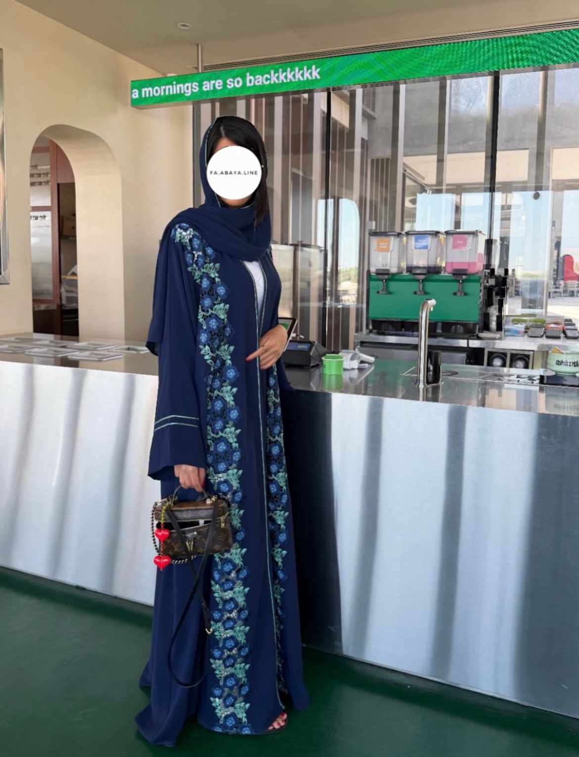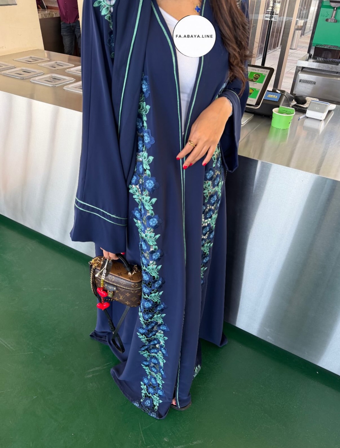 قماش العبايه لينن، القصه كلوش “تطريز باللون الأبيض مع هدب أسود